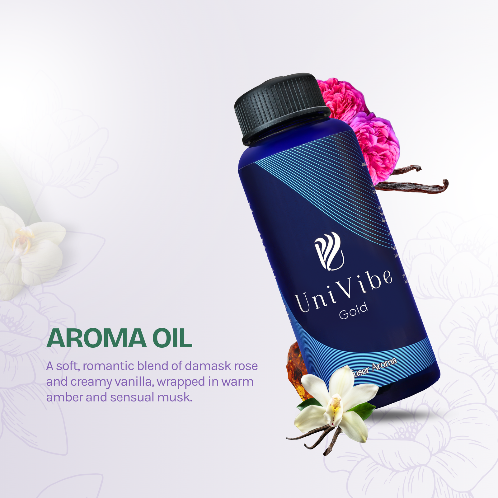 Passion by UniVibe is a fresh, vibrant and uplifting citrus-floral aroma oil that blends sparkling lime and mandarin with soft, elegant lily of the valley.